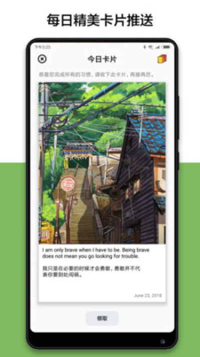 3.每天都会推送一张卡片,当今天所有习惯都完成之后即可获得该卡片,并收藏起来。您可以在卡片的背面记录该日的感想,激励自己。
