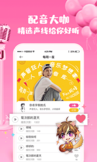 半边鱼app是广大声控的福利平台,不管你喜欢什么音,总能找到你爱的那一款,听了心水的声音,你还可以学习配音哦,声控们快来半边鱼app品各样音色吧。