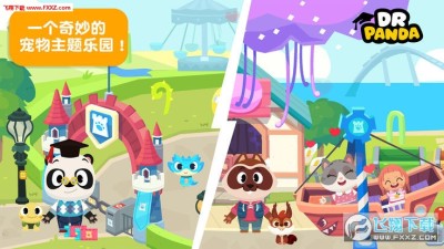 熊猫博士小镇全新开放了一个主题乐园,新的故事将从这里开始!乘上旋转的摩天轮,跳上摇摆的海盗船,或坐上弹椅一飞冲天!当你的宠物感到有点小不适?别担心,去宠物医院做一下检查,或到宠物旅店休息一下就会好起来啦!在这个乐园里,每一个人都可以找到自己的乐趣!
