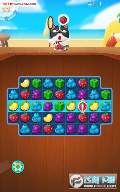 游戏以海盗猫和聪明机智的狗狗作为主角,合成各种美味果汁与蛋糕,在玩家进行三消游戏的同时,呆萌可爱的狗狗会帮助玩家消除障碍,收集水果。