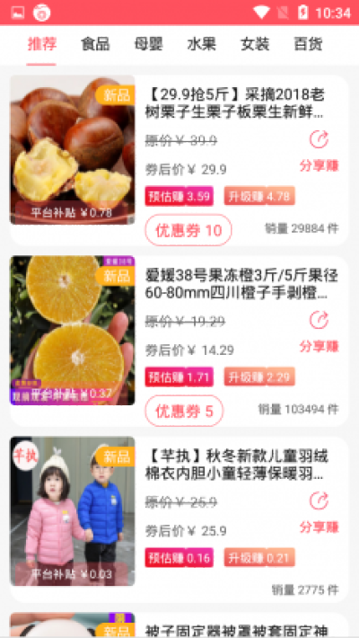一键分享各类优惠商品;用户一键领券,无需拼团,转化超好;高额返利享受美好购物体验,每日,上万张各类品牌优惠券;