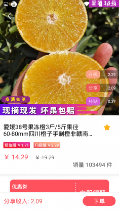 3、分享商品,可获得佣金收入;