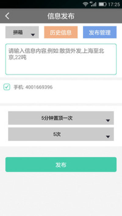 集拼APP是一个货车拼车的平台,页面简洁,操作简单,用户可以轻松编辑发布信息的内容。集拼APP支持一键拨打电话,快速浏览拼车信息,选择适合自己的就可以立即拨打电话联系,交易双方可以互相评价。