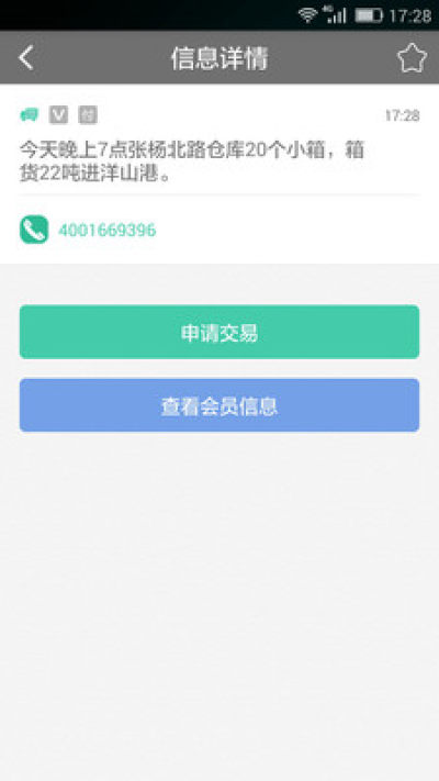 【信息】最简洁的信息列表预览界面,一键拨打电话;进入信息详情页面查看完整的信息内容,收藏信息,查看会员信息,申请交易等待对方处理结果,同意的信息将会增加星级,可以互评,同时可以设置已成交停止置顶;根据需要选择您想要的信息类型,显示当天的信息量。