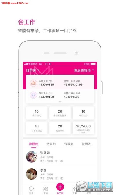 在门店内部管理方面,通过模拟首席营销官、首席运营官、首席行政官、客服总监等重要职位的智能,高精准度还原开创了团队管理、店务管理、数据统计等功能,建立各项运作标准,为商家成立一个零成本的线上隐形集团总部,让门店拥有智能大脑,让不懂美业经营管理的人也能开好自家的门店。