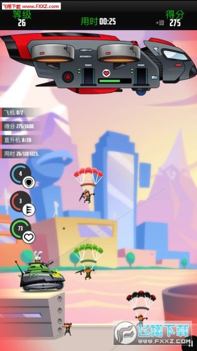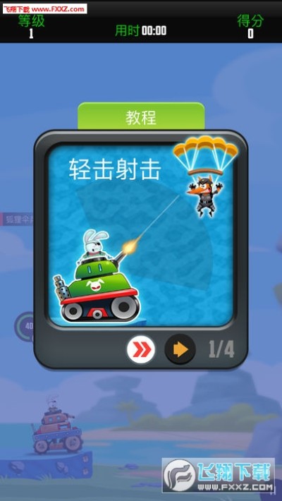 1、在场景中,你将以兔子的身份对狐狸伞兵进行射击,并通过挑战任务目标获得经验,这样你就可以自己的提升级别。