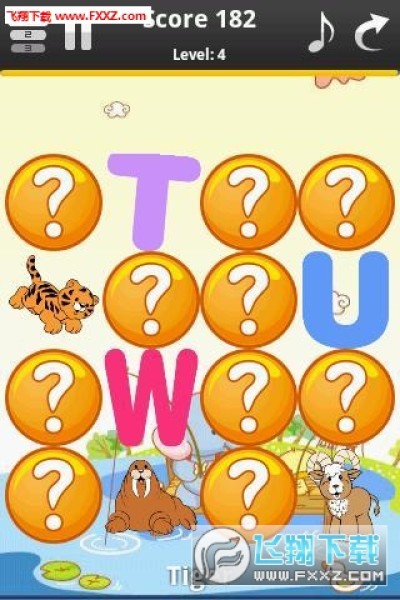 在屏幕中,有一些动物图片和相配的动物名字首字母图片,例如B和熊(Bear)、T和老虎(Tiger)。请在限定时间内把所有配对的图片找出来。如果翻转的两张卡片的图片不配对,卡片将会翻回;如果图片相配,将会增加游戏时间和分数。每当完成任务,游戏的主题会改变哦。有声是默认的设定,您可以在选项将音乐关闭。还带有了全球排名功能哦,让全世界的人看看你有多厉害吧!