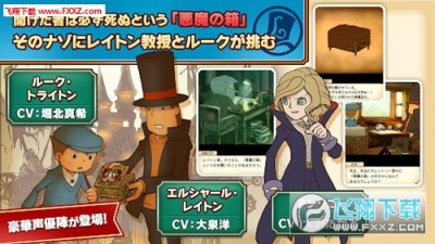 雷顿教授与恶魔之箱是该游戏系列的第二个作品,这款最早在2007年就已经出来了,故事的情节很吸引人,从雷顿教授的恩师开始,恩师收到了一封信,信中说道关于死亡密室的箱子,雷顿教授因为担心,于是带着自己的伙伴去寻找可能遇害的师父,到达后果然不出所料,雷顿教授跟伙伴两个人为了解开这个谜题,开始了无尽的冒险,到底过程中会出现什么呢?