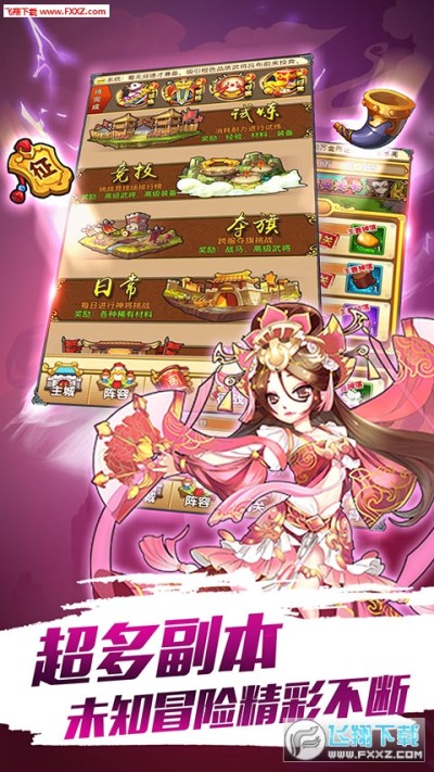 每个武将都会对应一种防御塔类型,每个类型的防御塔又可以通过培养从外观到能力上有多种变化,极大的丰富了塔防战斗的策略性