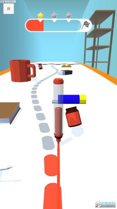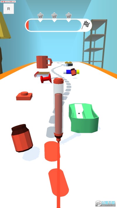 Hurry Pen的画面场景采用的是3D引擎打造的,每一个场景的色彩搭配的十分融洽,这是一款休闲闯关的益智游戏,玩家进入游戏后,将会控制里面的钢笔开始闯关,几十种精心设计的关卡等你来挑战,玩家需要收集足够的墨水,操控钢笔移动,避开障碍物,顺利的通关。