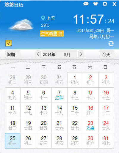 悠悠日历是一款小巧实用桌面日历软件,绿色免费,方便高效,界面简洁美观人性化,是一款非常不错的软件