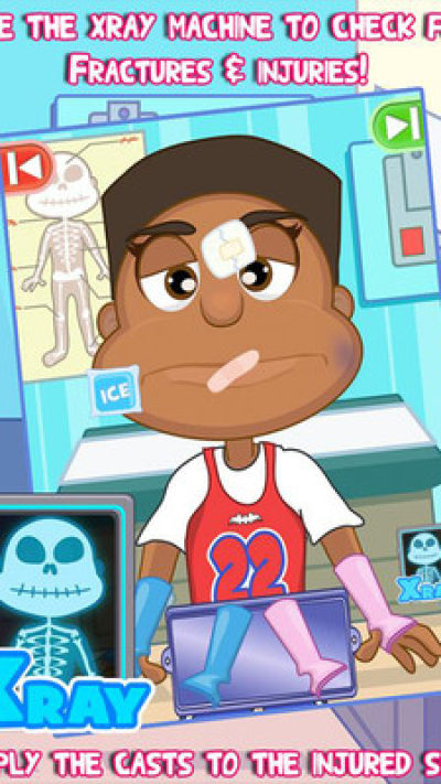 X光检查病人是否有骨折,然后把他们扔到贴纸实验室,在那里你可以用各种各样的贴纸和有趣的玩具装饰病人!!