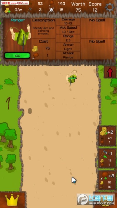 本场比赛是由传说中的魔兽争霸III MOD灵感LegionTD。建塔,以保护你的国王对越来越困难的对手! 与您的朋友竞争,看看谁能够获得最高评分。选择是能源或人力来保护你的国王。通过购买淘金者或樵夫创建一个强大的经济。如果你的炮塔模你能打击对手,国王和使用他的法术:蹬地和冲击波!