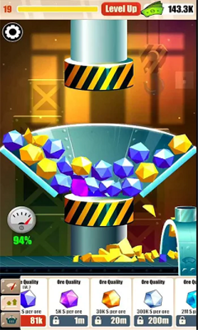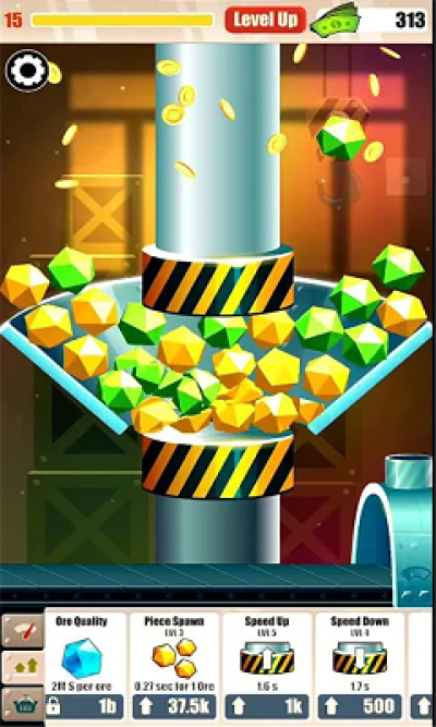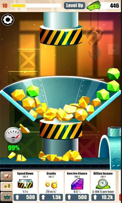 2、通过不断的粉碎各种物品获得收益,可以用来不断升级液压机性能;