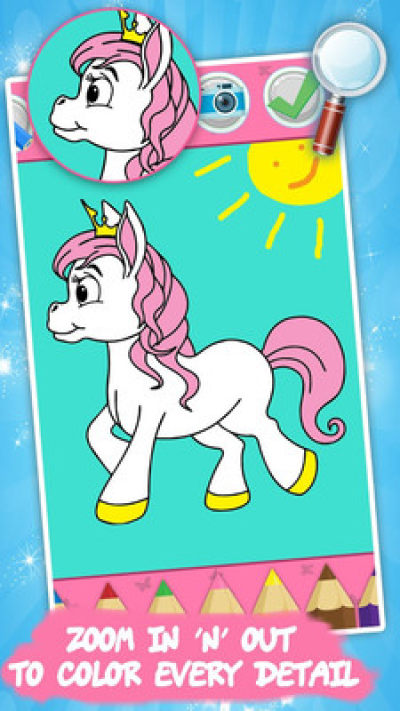 着色页的书孩子们的游戏充满独角兽,马和小马驹,并不仅是专为您的3-5岁的女孩,但你的儿子也是如此。颜色麒麟,马和小马驹您的手机或平板电脑上的彩页在这个虚拟的着色和绘画的书。它是那么容易,即使是孩子可以玩。这种着色游戏是孩子们的游戏,孩子们可以颜色和画独角兽着色页,但他们也可以画马和自己的绘画。游戏中包含了大量的小马驹的图片,所以它可能是担心少小马着色书为好。这两个,男孩和女孩会喜欢这个图画书游戏的孩子。在这个填色游戏,你可以找到一些童话生物,如王子,公主,独角兽,小马和马。