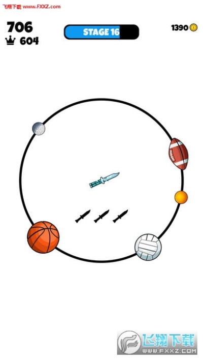做最好的飞刀侠士!在这个新的游戏中,用飞刀射击球,百发百中,通过几个关卡后都会有一个小型BOSS关卡,需要射中很多刀才能过关!
