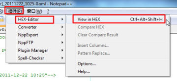 然后重启notepad++,就可以在Plugins中看到对应的Hex-Editor插件了。