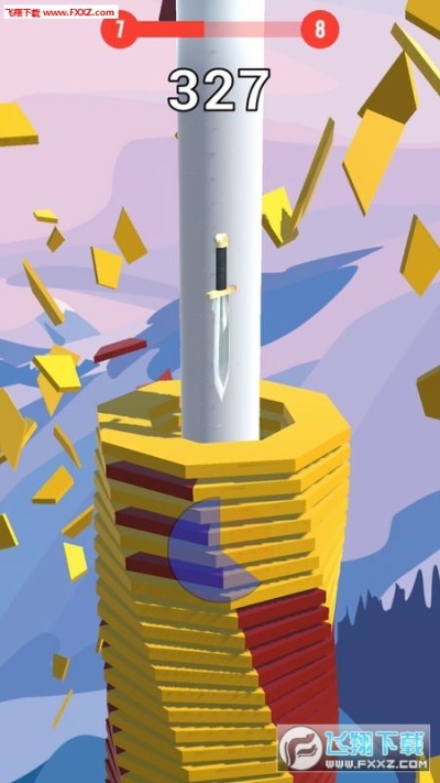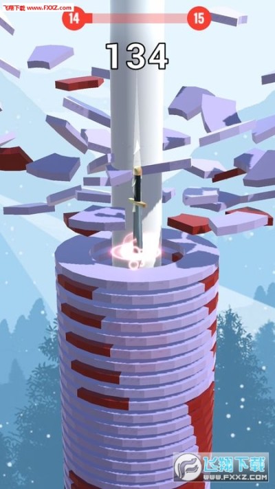 2、手指指尖滑动让你的飞刀精致的射击到塔楼最下方,同时还有消除更多的塔楼才能得到更多的分数;
