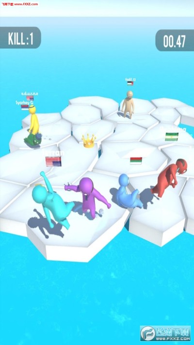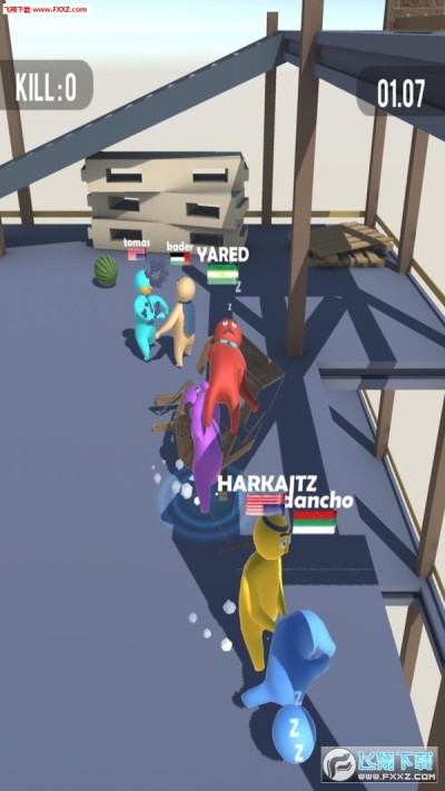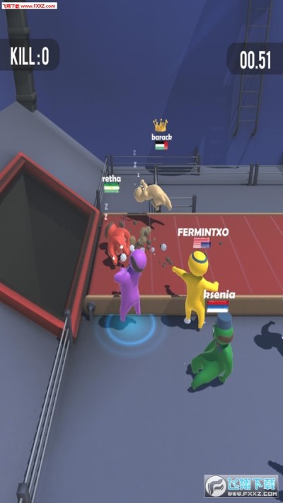一款以物理玩法为主的联机大作战游戏,在游戏中所有的玩家将在同一个平台上战斗,一旦被扔出平台下就会失败,如果你连续被攻击就会晕倒,晕倒了就会被人扔出去,游戏的玩法非常清奇搞笑,玩起来欢乐无限,你也可以和好友一起并肩作战,团队配合玩起来更给力。