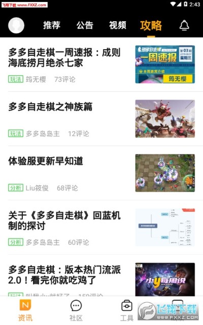 进入《掌上自走棋》的时候,在首页就能看到官方的公告和攻略,不仅仅有官方攻略,还有许多大佬发布了文章攻略和视频攻略,还有许多的对局视频,新手玩家可以学到许多有用的小知识,对游戏的胜利有很大的影响!