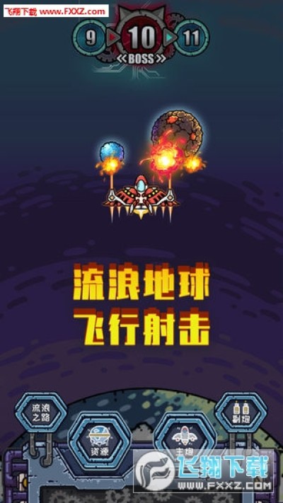 在地球流浪背景下,玩家操作飞机“领航员号”去击败一波又一波的陨石。
