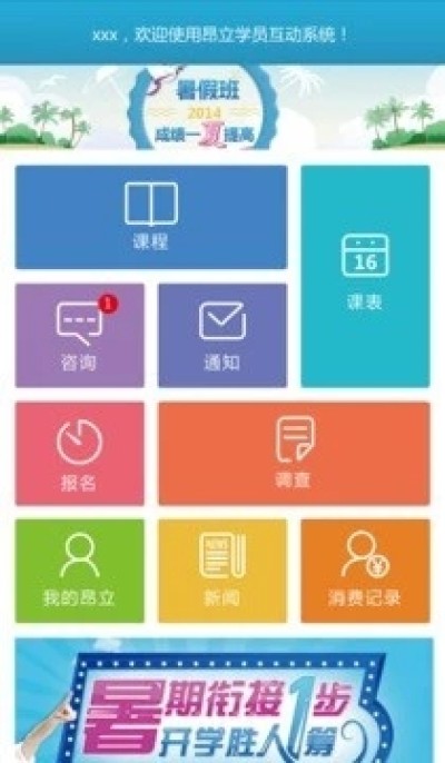 昂立教育的学员可以通过学员互动来跟踪自身的学习状况,与老师建立有效联络,同时也可以通过应用了解自身在昂立教育的学习经历,应用提供与学员相关的讲座,考试等项目预约,同时具备采集学员反馈信息的功能.