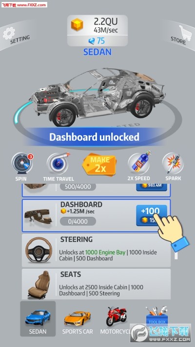 全民改装车安卓版(Idle Car)是一款非常休闲的汽车放置改装类游戏。在全民改装车游戏最新版中,玩家需要从零开始创造属于自己的汽车,非常真实的汽车组装过程,从一个小小零件开始,一步步组装成一辆完整的汽车。玩家可以根据自己的喜好,为汽车安装各种增加性能的零件,或者上色。自由度非常高的模拟类游戏。感兴趣的玩家赶快下载体验把!