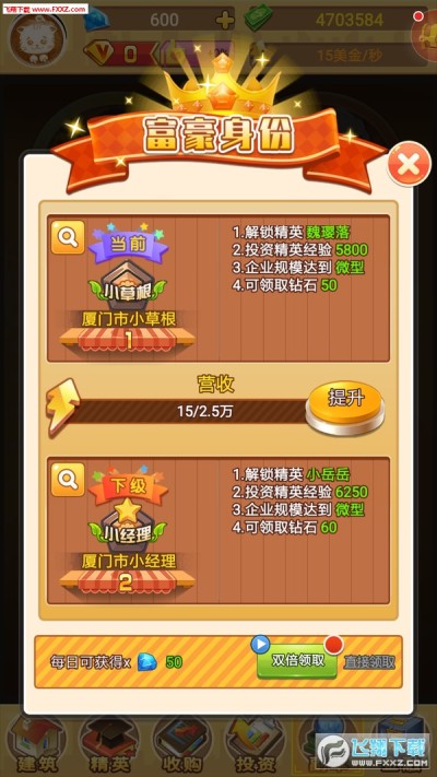 游戏中妳扮演的是从白手起家的小商贩到创立商业帝国的世界首富。开挂的人生、逆袭的传奇就在眼前,进来体验下一朝暴富的真实感吧!