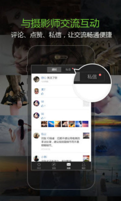 4.您还可以与POCO摄影社区的众多大师、爱好者充分的互动、点赞、留言他们的作品。当有摄影师给你作品留言、点赞或私信,