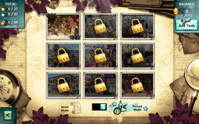 《百分百隐藏物体2》的难度不小,其中的图片让人眼花缭乱,很多物品隐藏在背景中,要找到并不容易。不过游戏提供了丰富的道具来帮助玩家,比如暂停时间60秒,高亮显示物品,移除部分物品等等。而玩家外语水平有限的话,还可以选择“按图找物”模式来进行游戏。