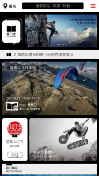 黑门是一款倡导玩家精神的全民潮流文化社交平台,以O2O的分享经济模式来提升用户体验感。黑门可以帮助玩家从虚拟世界走向现实世界,在现实世界中发掘兴趣爱好,在团体活动中发现志同道合的队友。它以兴趣社交为导向,潮流运动为集结,是兴趣爱好者不可错失的一个平台。