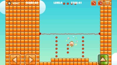 通过虚拟按键来移动小猴,左边的虚拟按键是左右移动,右边的按键是跳跃。