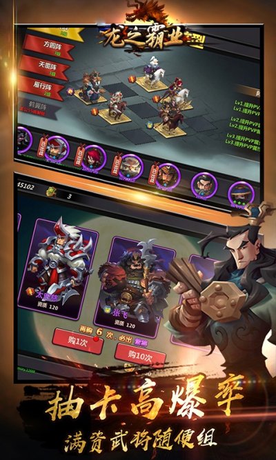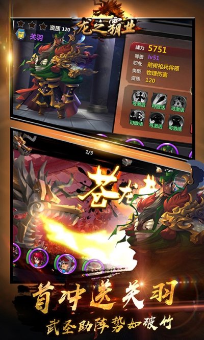 《龙之霸业(商城特权)》是以三国为故事背景的策略型国战手游,气势恢宏的主城建筑,拟真策略国战玩法,攻城掠地,阵营诸侯征伐,历史三国名将,顶级装备经典战役传说中的机关兽都将在游戏中一一展现。游戏采用复古写实Q版的绘画风格,同时将SLG国战玩法和卡牌模式相结合,完美呈现三国时期的魏蜀吴三国争霸的恢弘阵营战争完美呈现,荡气回肠的经典战役为你还原三国史诗战争,让您有身临其境之感;今朝称王,成就王者霸业将由你来谱写。