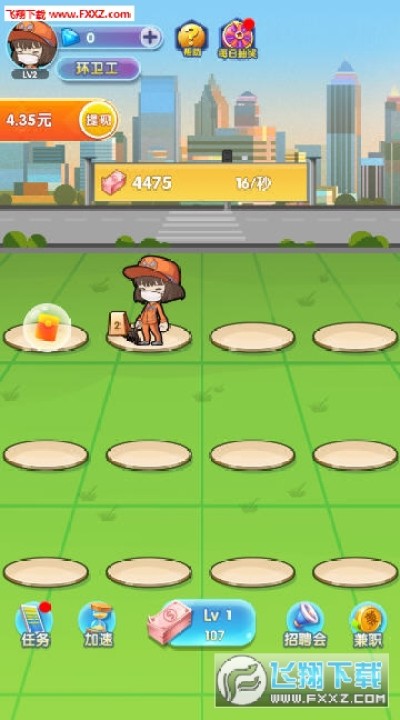 1、游戏的操作比较简单,通过合成人物的方法让自己的工作能力提升,然后在相同时间获得的收益会增加。
