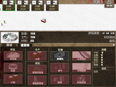 当然游戏中玩家不能一味被动防御也要进攻,玩家点击“村庄规划”按钮可以检视村内库存,利用这些物品可以建造新的设施,比如射击孔,在夜晚降临时玩家可以通过这些射击孔射杀敌人。