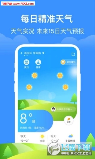 如意天气app是一个很精致的天气预报软件哦,不仅为大家提供详细的天气信息,而且还能赚钱,新人登录就会送5000的金币,兑换现金差不多0.3元,可以直接提现的,秒到账,后续还有1元提现的机会,有需要就下载如意天气app体验吧。