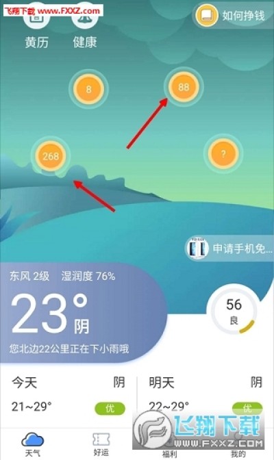 如意天气是一款类似简单天气的生活应用,简单试用了一下发现还是比较实用的,天气显示也比较精细。这个活动新人登录送5000金币,可直接秒提0.3元,也可以先不提那么快,后面还有一个1元的提现福利。邀请码:10877164