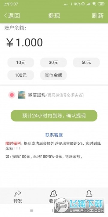 柿子阅读APP是水果联盟旗下的一款转发文章赚钱软件,新人下载即送1元现金奖励,每日提供海量分类明确的新闻资讯供大家转发分享赚钱,转发单价0.4元/阅读,其中每天有6个小时限时单价高达0.8元,每天分享收益达到5元,还能参与“抽大奖活动”百分百中奖,此外提现成功后还有5%额外返利,例如提现100元再送5元,非常给力。