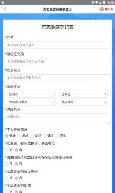4.根据问卷问题,填写具体健康情况后提交。