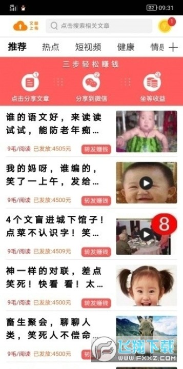1、一款阅读转发赚钱应用,软件拥有丰富的文章视频内容。