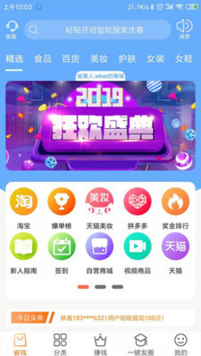 自购省钱——秒杀同类平台,百万大额优惠券每日海量更新,领券购买更省钱。