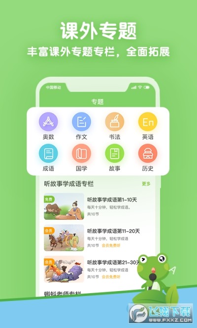 4.专题栏目:提供小学作文、国学、故事、历史、百科、小学奥数(思维训练)、英语自然拼读法、小学英语知识点讲解动画课程、书法写字等专题课程,寒暑假专项突破,全面拓展。