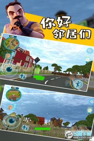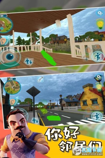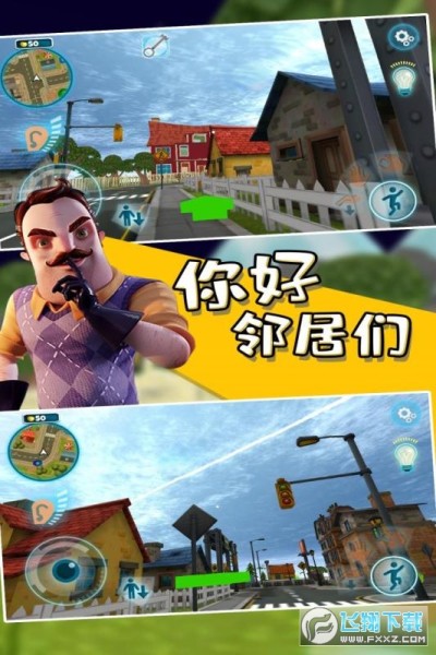 你好邻居们是第一人称冒险惊悚游戏,具有互动环境和有趣的任务。 解决谜题,揭开生活在你身边的可疑邻居的秘密。 您的冒险开始于一个不寻常的城市,在那里您可以找到许多有用和独特的物品 您将会遇到一名警察和外国设备的卖家,在游戏过程中您将熟悉不寻常的生物。 每个项目和角色都创造了一个巨大的迷人故事。
