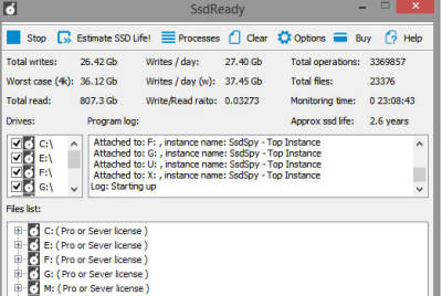 SsdReady 是一款能够检测 SSD 固态硬盘寿命的工具,与其他检测工具不同的是 SsdReady 通过统计一天的硬盘使用量来推算寿命;
