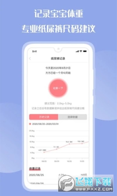 【纸尿裤记录】智能推荐纸尿裤尺码,宝宝更舒适,家长更舒心;