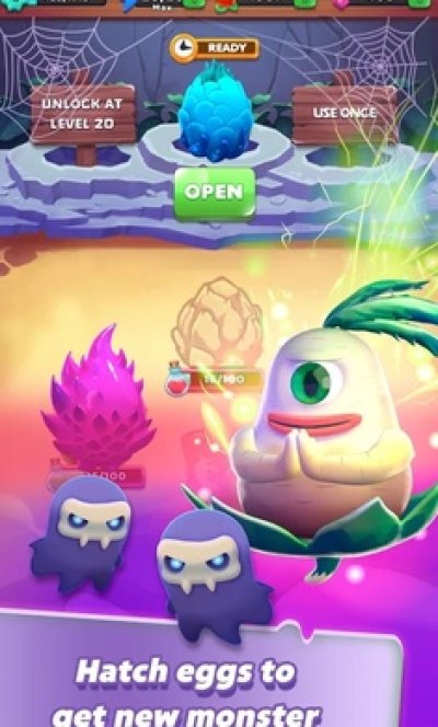 喂食您的怪物以升级它们并增强其特殊的攻击能力!收集并孵化怪物传说,发现所有120个独特的可玩怪物!创建一支与之作战的完美阵容,并利用每个怪物的元素力量成为战地竞技场的冠军!您可以与来自世界各地的玩家竞争,甚至可以邀请您的朋友一起战斗!