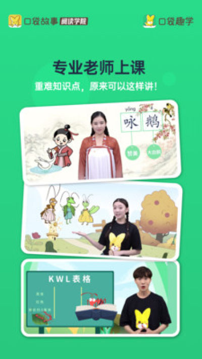 口袋趣学app免费版是口袋故事旗下的一款手机学习类的二平台,这款软件是针对小学语文打造的同步教材学习软件,在口袋趣学app上用户可以查看相关的课程,有专业的老师指导教学,趣味性的学习方式孩子更加容易接受!