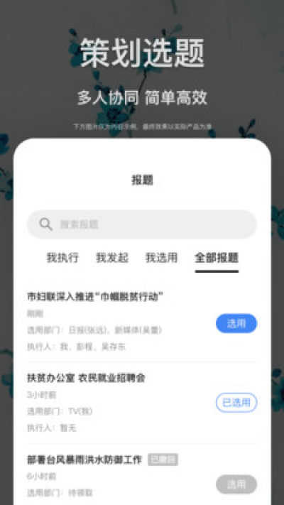 记者/主编可以在手机上查看线索,进行报题、选题,团队协同简单高效