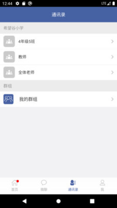 通讯录:与其它通讯工具(如微信)不同,希望谷有一个无需家长创建、维护、更新的通讯录,里边包含了所有与自己相关的老师、家长的联系信息,同时,通过通讯录的群组功能,可以方便地建立各种群组(如社团、家委会、少先队、教研组等),以便于特定群体的沟通和交流。