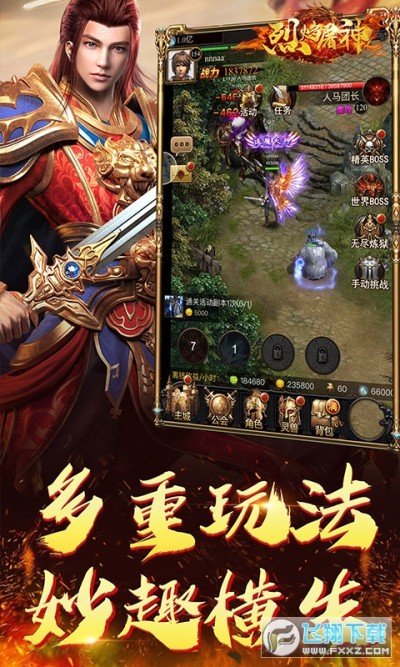 《烈焰屠神》震撼来袭!继承了传奇的核心玩法,延续了传奇的经典设定,原汁原味的还原经典,且新增圣兽宫等全新圣兽副本,打BOSS得元宝!本作画质全面升级,顶级蓝光场景,超爽的战斗体验!让我们再燃传奇经典,再现一代人的青春,再次感受兄弟之间的热血情谊!
